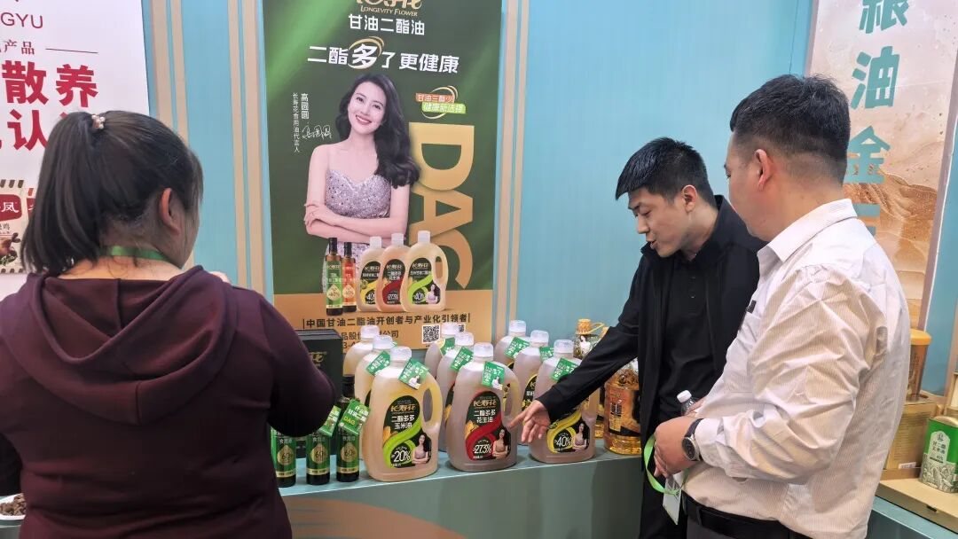 活动现场,长寿花食品倾力打造高端健康粮油展示专区,以甘油二酯油系列、金胚玉米油等高端产品矩阵惊艳亮相。作为重磅推出的功能性食用油,长寿花甘油二酯油系列凭借其高端品质、健康特性,吸引与会嘉宾驻足洽谈,产品品质及所蕴含的技术成果和健康理念,受到现场与会人员高度关注和认可。